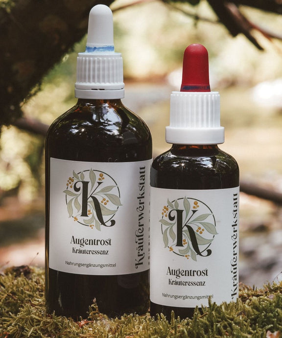 Ethanol extracts are a good way to make the ingredients of plants available and durable. They are also ideal acute remedies because they can produce a rapid effect by being absorbed into the blood. Essences are primarily used internally, but depending on the herb, they can also be used externally for minor injuries or mosquito bites. As the basis for our extracts, we use an organic grain spirit, which is mixed for us by our trustworthy farmer in the right grammage .