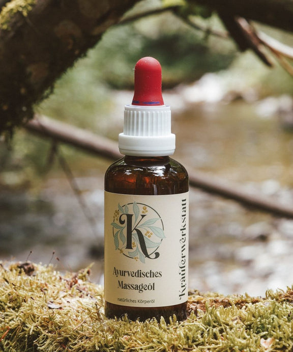 The Ayurvedic massage oil from the herbal workshop is a macerate (oily extract) made from 10 natural herbs and organic sesame oil. A soothing body oil that balances the elements for the Ayurvedic body or partial massage.