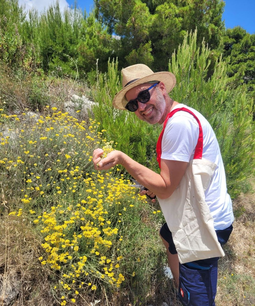 Herkunft der Immortelle-Blüten: naturbelassene Imortelle-Blüten aus händischer Wildsammlung in Kroatien. In achtsamer Handarbeit von Nicole und Andreas in unserer Kräuterstube in den KräuterCubes getrocknet und im Essenz-Labor zu diesem Auszug verarbeitet.