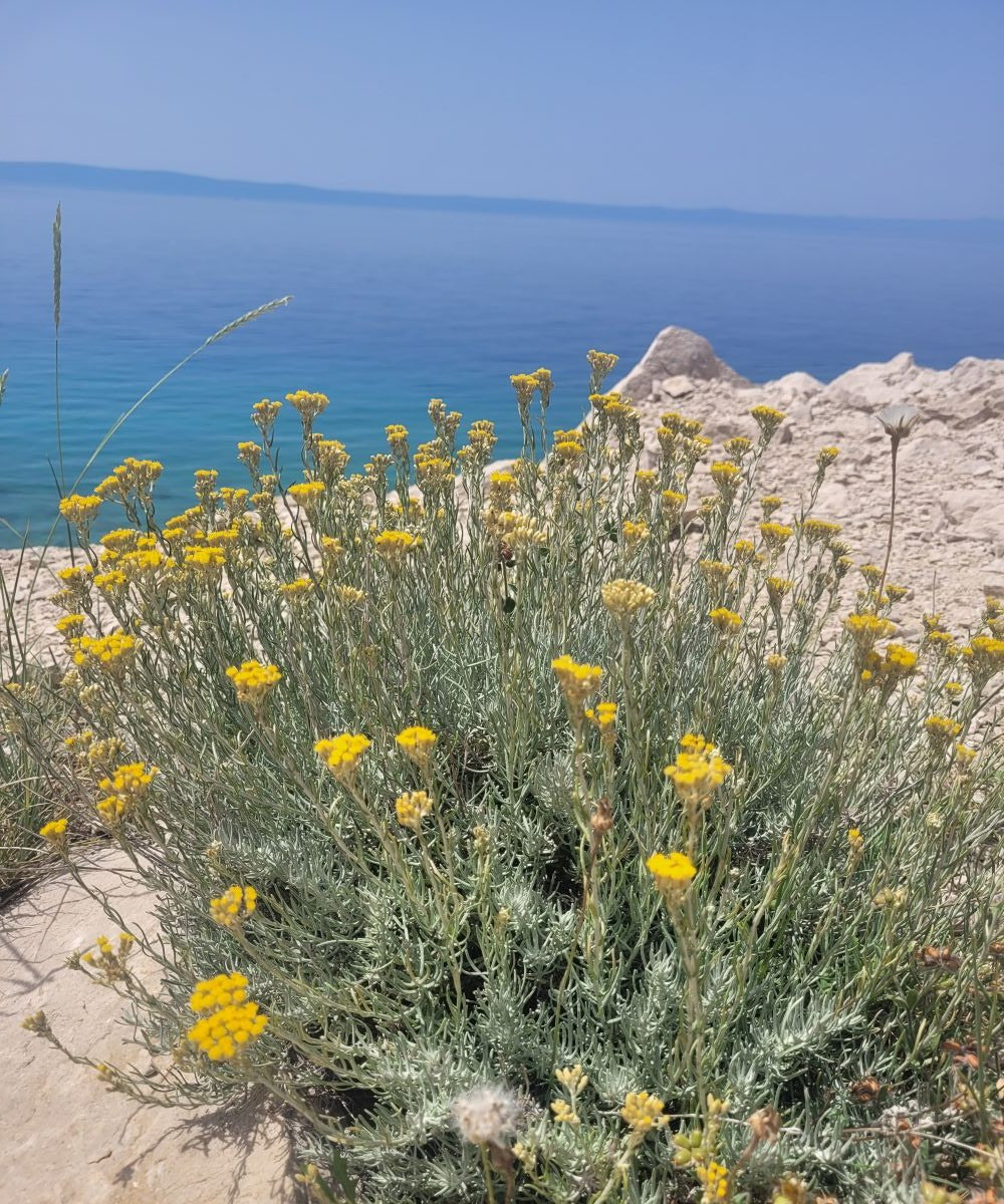 Die Immortelle ist eine typische Pflanze des Mittelmeerraumes und wächst dort, wo sonst nichts mehr wächst, Hauptsache sie hat immer genug Sonne.