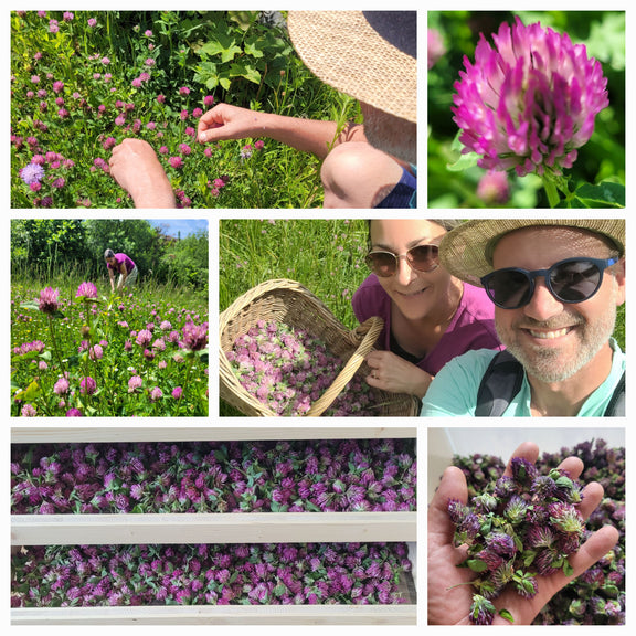Un'interazione delle nostre essenze erboristiche di trifoglio rosso, mano di Dio (achillea) e partenio (Bertram) in parti uguali.