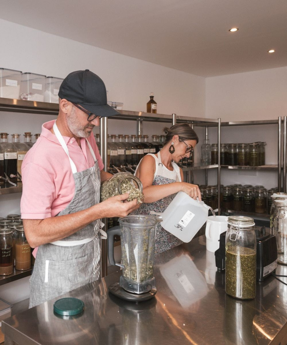 Ethanol (=Alkohol) ist ein natürliches Produkt, das bei der Hefegärung aus Kohlenhydraten gebildet wird. Eine Essenz (oder Tinktur) ist ein Pflanzenauszug, bei dem sich alle wasserlöslichen Wirkstoffe der Pflanze durch Extraktion in Ethanol lösen. Ethanolauszüge sind eine gute Möglichkeit, die Inhaltsstoffe von Kräutern und anderen Pflanzenteilen verfügbar und haltbar zu machen.
