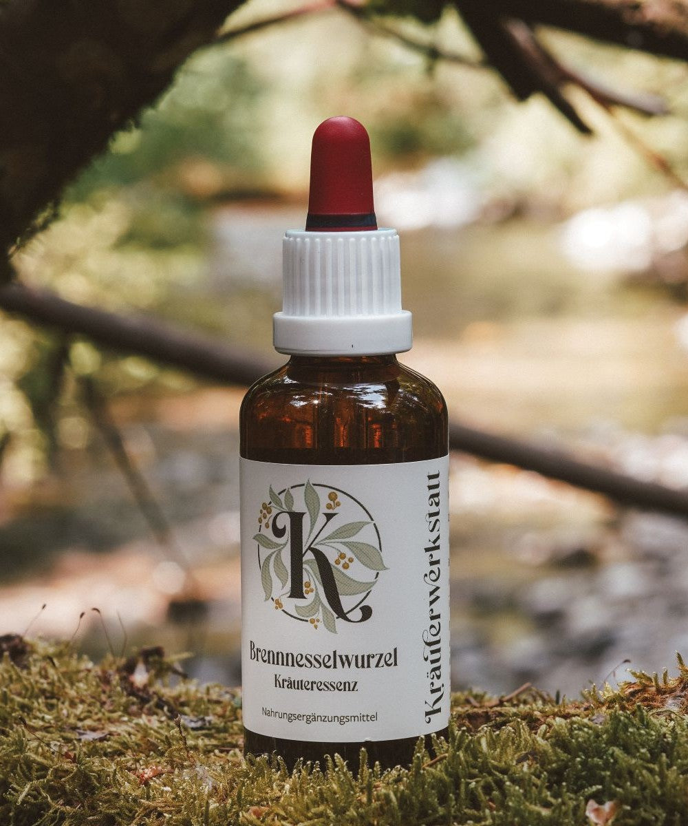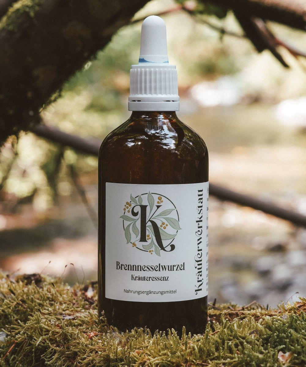 Bio-Kornbrand*, naturbelassene Brennnessel-Wurzeln aus händischer Wildsammlung auf Kärntner Almwiesen. In achtsamer Handarbeit von Nicole und Andreas in unserer Kräuterstube in den KräuterCubes getrocknet und im Essenz-Labor zu diesem Auszug verarbeitet. *enthält 38%vol Alkohol.