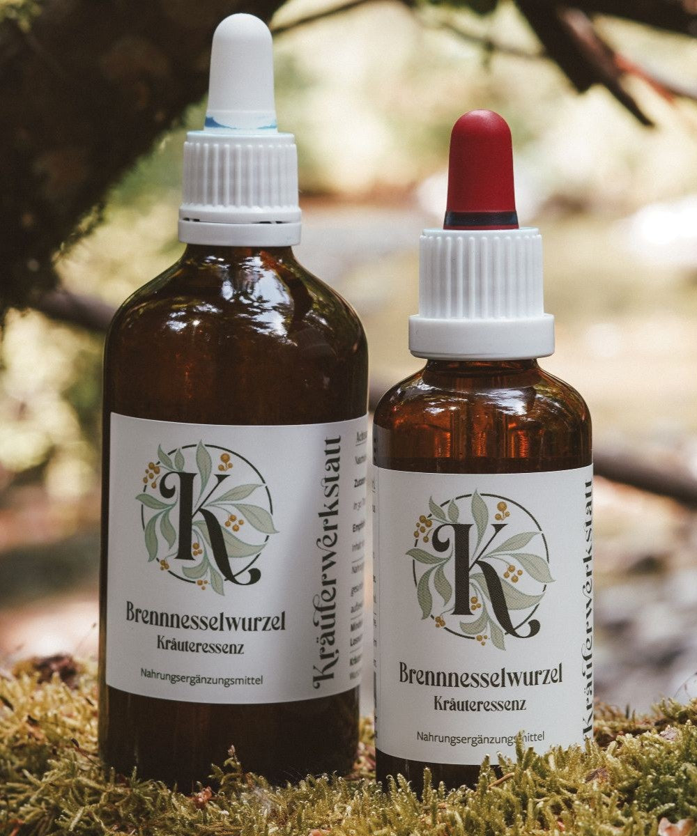 Kräuterauszug in 50ml oder 100ml braunen Apothekenflascherl mit hochwertigen Glaspipetten und Sauger.