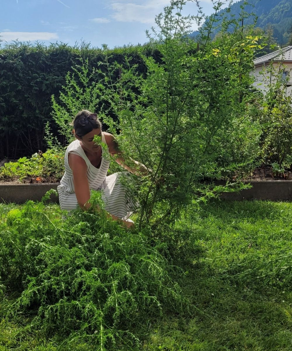 Bio-Kornbrand*, Einjähriges Beifuß-Kraut aus eigener Kärntner Gartenkultur. In achtsamer Handarbeit von Nicole und Andreas in unserer Kräuterstube frisch portioniert und im Essenz-Labor zu diesem Auszug verarbeitet. *enthält 38%vol Alkohol