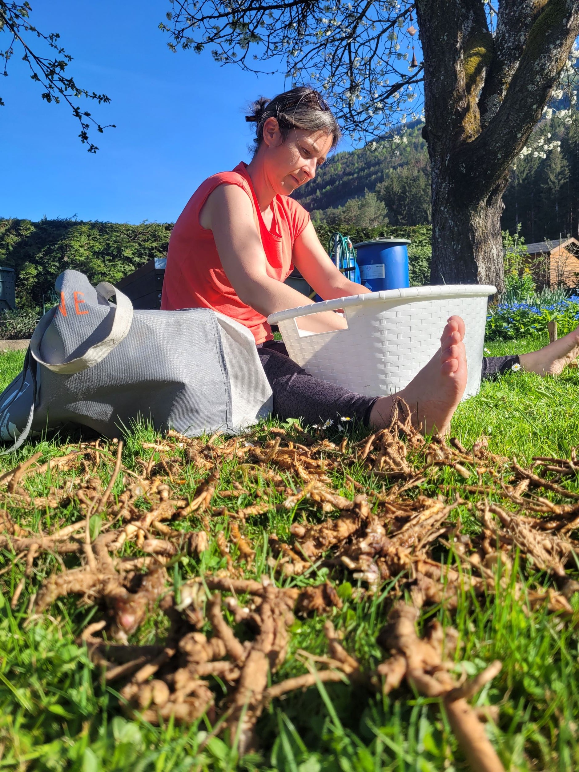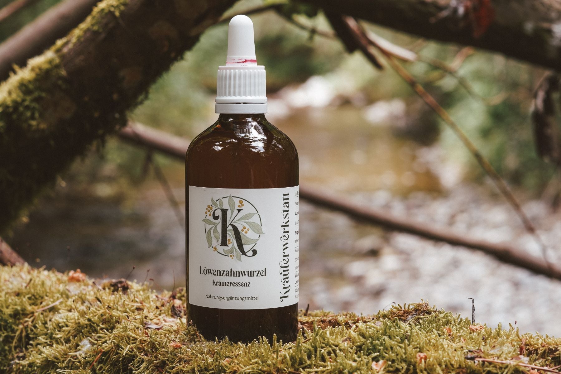 Bio-Kornbrand*, naturbelassene Löwenzahnwurzeln aus händischer Wildsammlung von Kärntner Almwiesen. In achtsamer Handarbeit von Nicole und Andreas in unserer Kräuterstube in den KräuterCubes getrocknet und im Essenz-Labor zu diesem Auszug verarbeitet. *enthält 38 %vol Alkohol.